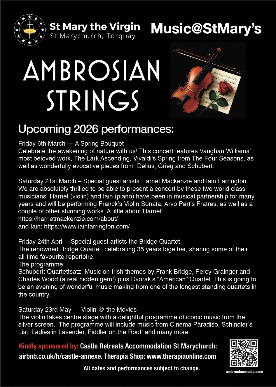 Join the Ambrosian Strings and our wonderful pianist, Mariko Asakawa-North for "An Ambrosian Romance", an enchanting evening of classical music celebrating the season of love. The programme: Elgar Salut d’amour […]